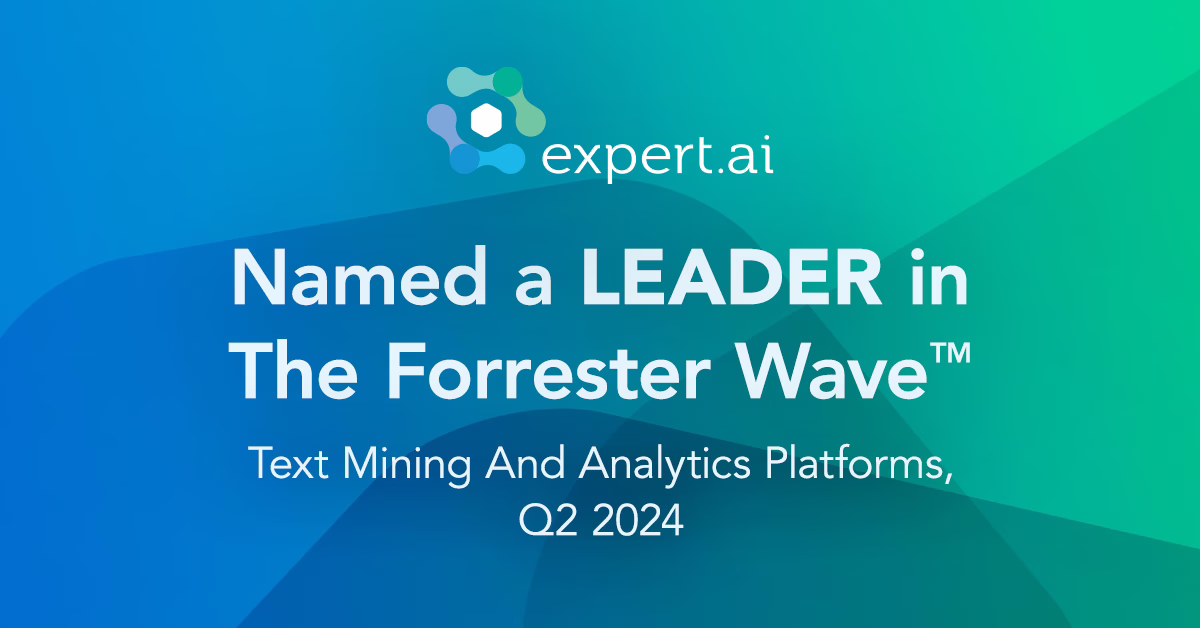 Expert.ai también ha sido nombrada Líder en The Forrester Wave™: Document Mining and Analytics Platforms Q2, 2024, que evalúa “los 14 proveedores más relevantes y cómo se comparan” en la categoría de Plataformas para Document Mining and Analytics.